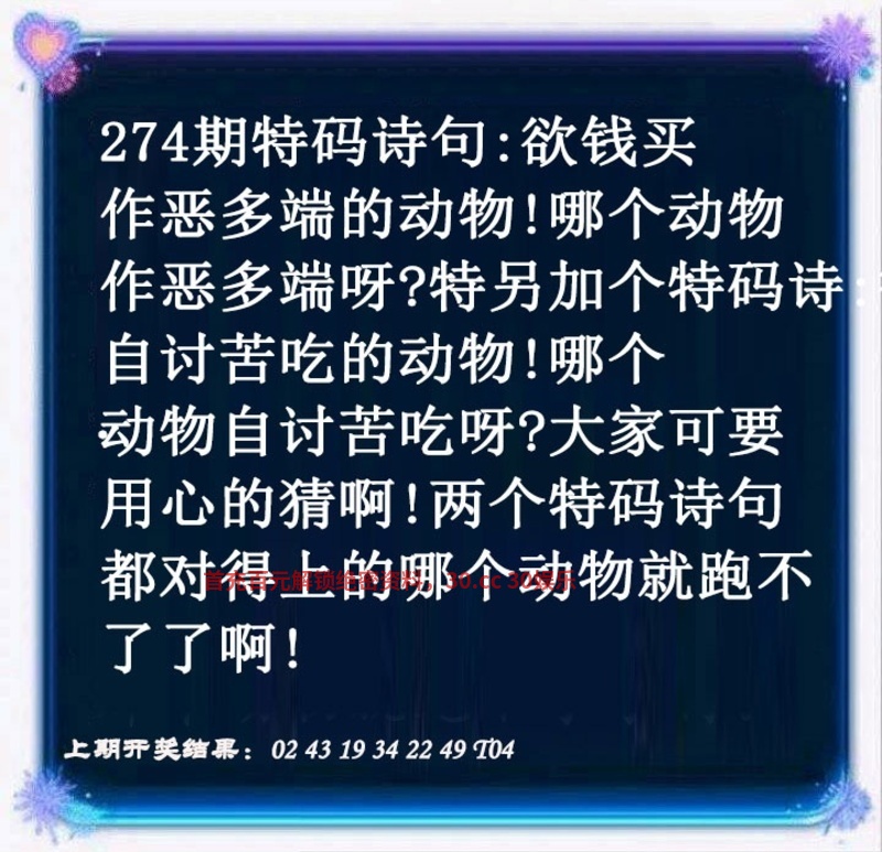 274期:✶绝杀二合✶《01-11》开:狗44准 |