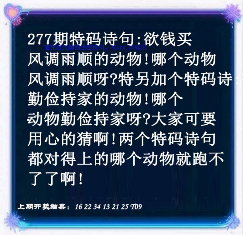 277期:③行中特【金水土】开:虎16错 |